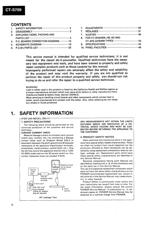 Pioneer CT-676, CT-676S & CT-S709 Cassette Deck Service Manual (Pages: 29)