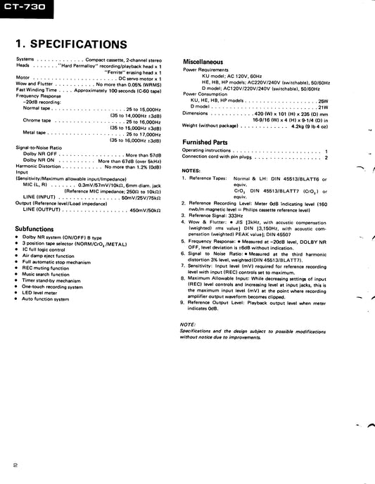 Pioneer CT-730 Stereo Cassette Tape Deck Service Manual (Pages: 57)