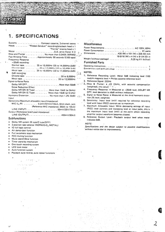 Pioneer CT-939 & CT-S800 Cassette Deck Service Manual (Pages: 28)