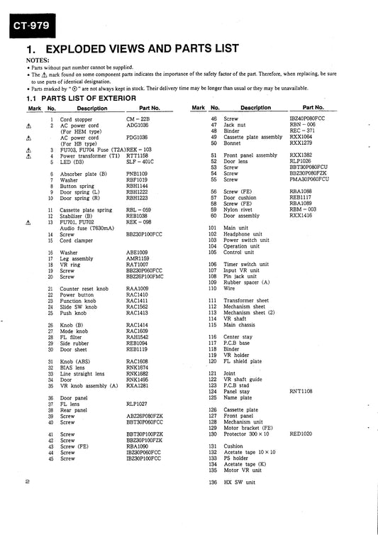 Pioneer CT-979 Stereo Cassette Deck Service Manual (Pages: 36)