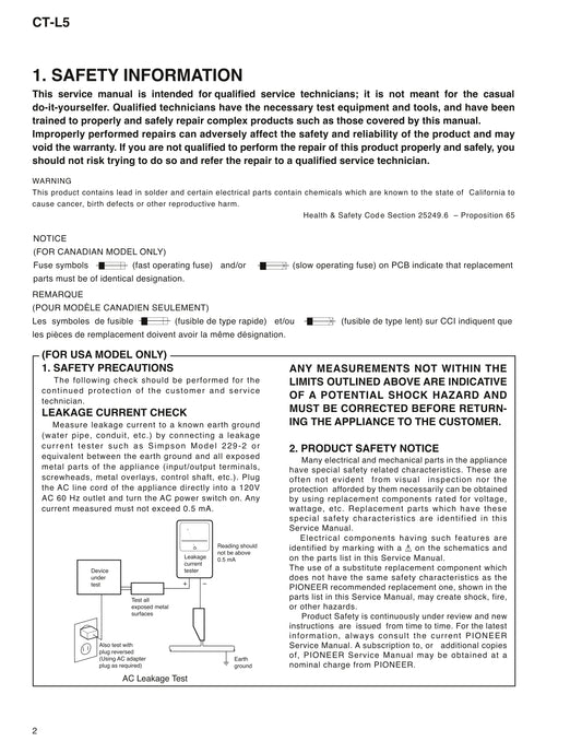 Pioneer CT-L5 Stereo Cassette Tape Deck Service Manual (Pages: 27)