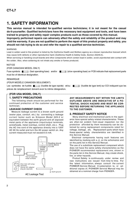 Pioneer CT-L7 Stereo Cassette Tape Deck Service Manual (Pages: 27)