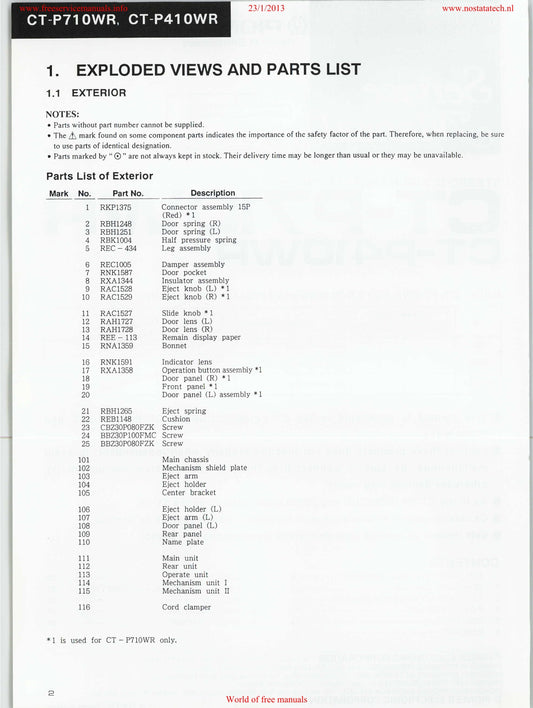 Pioneer CT-P410WR & CT-P710WR Stereo Cassette Tape Deck Service Manual (Pages: 29)