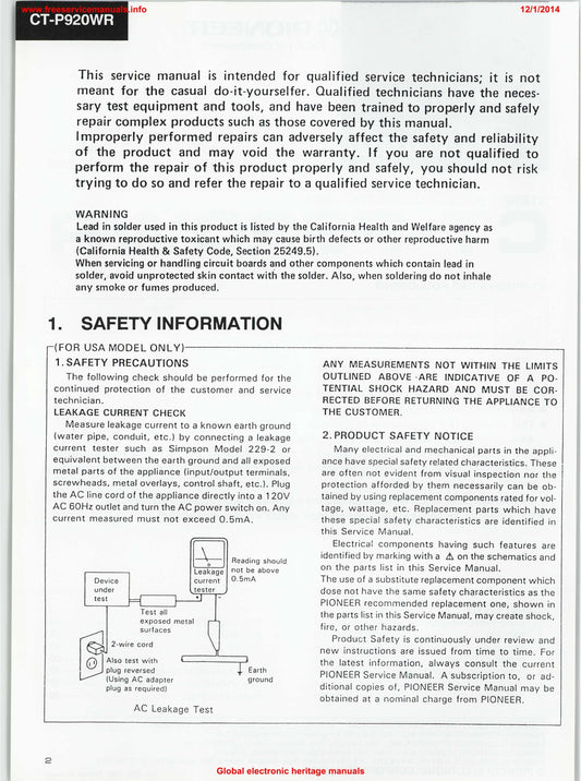 Pioneer CT-P920WR Stereo Cassette Tape Deck Service Manual (Pages: 28)