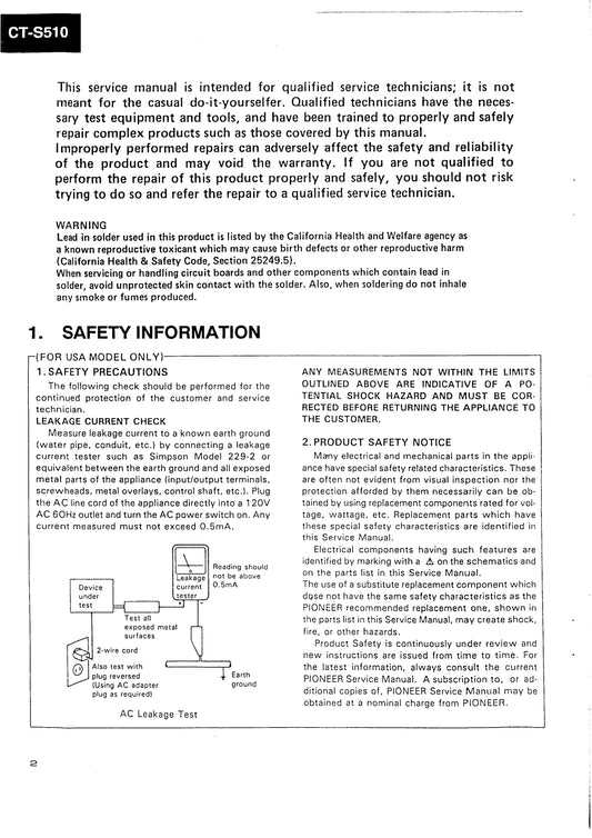 Pioneer CT-S410 & CT-S510 Cassette Deck Service Manual (Pages: 41)