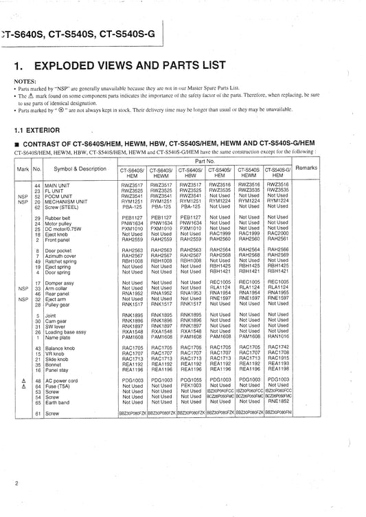 Pioneer CT-S540S & CT-S640S Stereo Cassette Tape Deck Service Manual (Pages: 29)