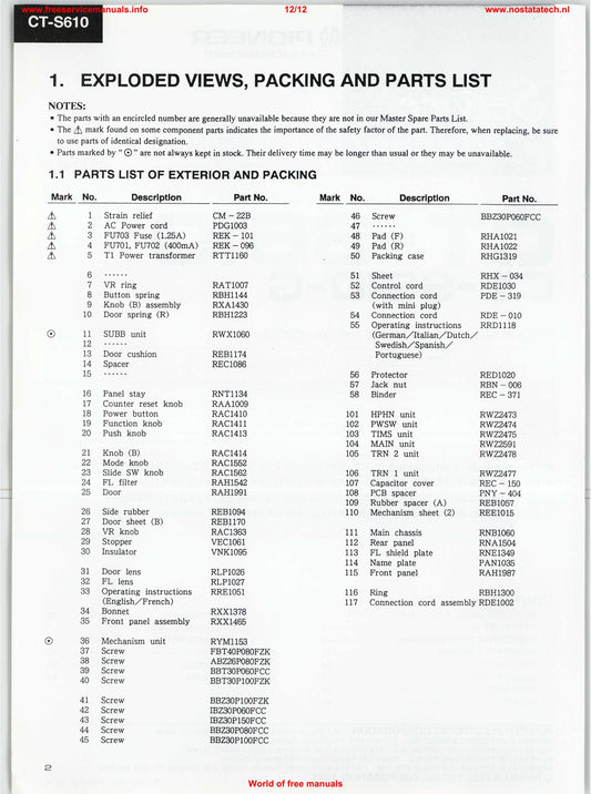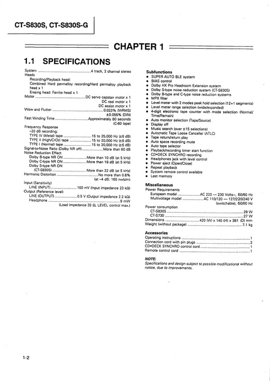 Pioneer CT-S830S & CT-S830S-G Cassette Deck Service Manual (Pages: 30)