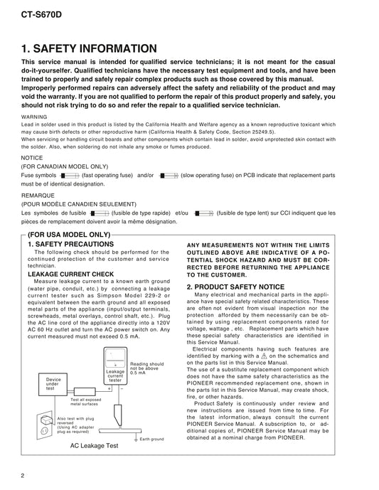 Pioneer CT-S670D Stereo Cassette Tape Deck Service Manual (Pages: 41)