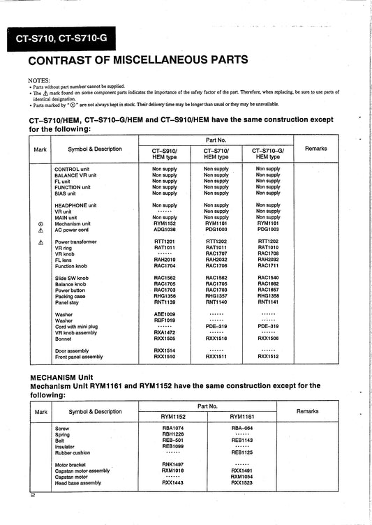 Pioneer CT-S710 & CT-S710-G Cassette Deck Service Manual (Pages: 54)