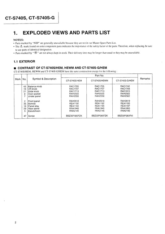 Pioneer CT-S740S & CT-S740S-G Cassette Deck Service Manual (Pages: 39)