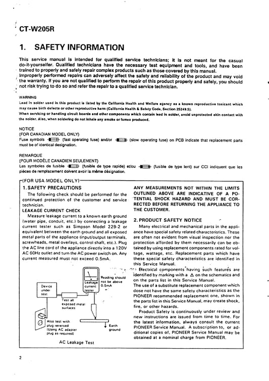 Pioneer CT-W205R Stereo Cassette Tape Deck Service Manual (Pages: 34)