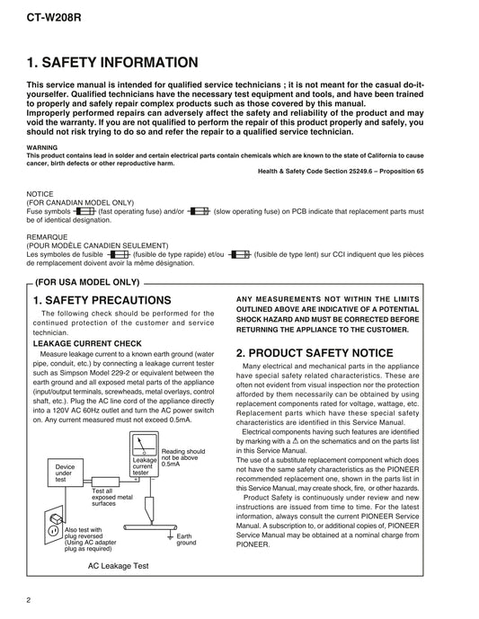 Pioneer CT-W208R Stereo Cassette Tape Deck Service Manual (Pages: 40)