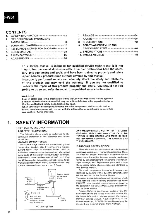 Pioneer CT-W51, CT-W950R & CT-W960R Stereo Cassette Tape Deck Service Manual (Pages: 41)