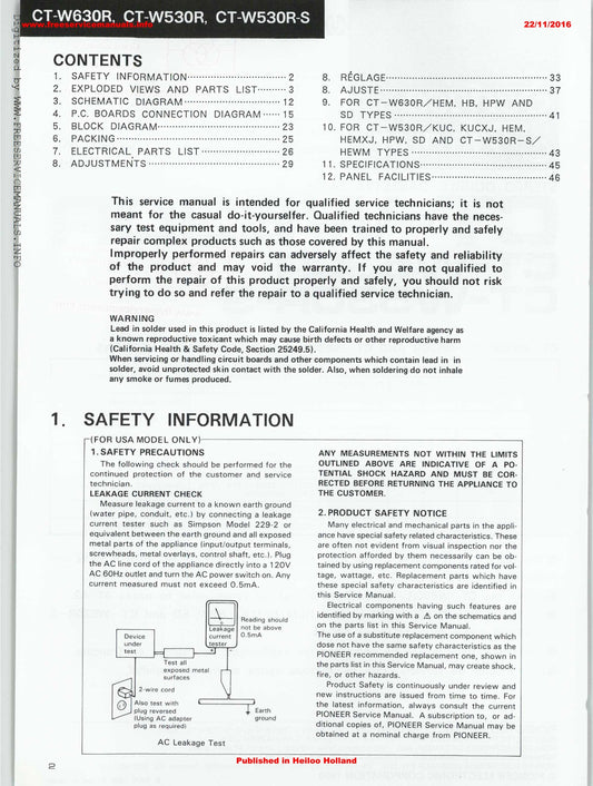 Pioneer CT-W530R, CT-W530R-S & CT-W630R Stereo Cassette Tape Deck Service Manual (Pages: 31)