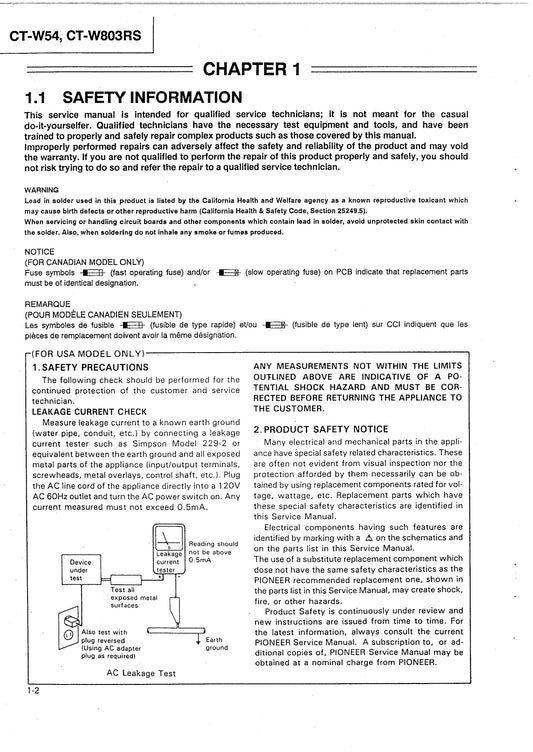 Pioneer CT-W54 & CT-W803RS Stereo Cassette Tape Deck Service Manual (Pages: 34)