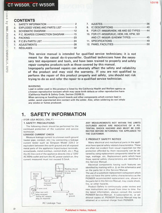 Pioneer CT-S550S Stereo Cassette Deck Service Manual (Pages: 27)