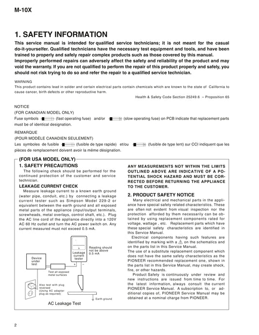 Pioneer M-10X Stereo Power Amplifier Service Manual (Pages: 22)