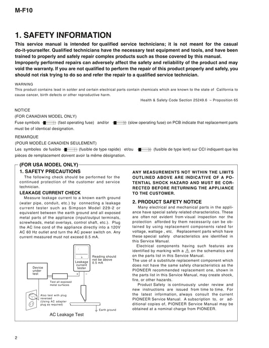 Pioneer M-F10 Stereo Power Amplifier Service Manual (Pages: 28)