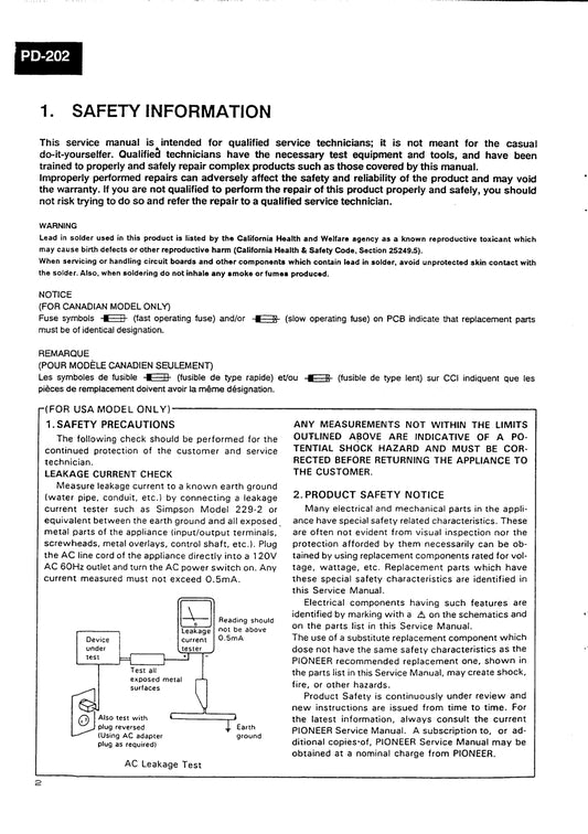 Pioneer PD-102 & PD-202 CD Player Service Manual (Pages: 33)