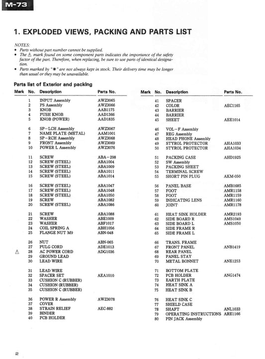Pioneer M-73 Stereo Power Amplifier Service Manual (Pages: 28)