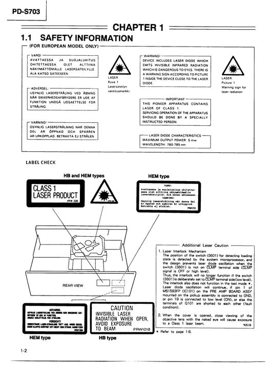 Pioneer PD-S703 CD Player Service Manual (Pages: 29)