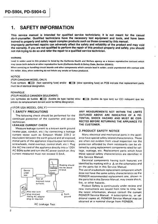 Pioneer PD-S904 CD Player Service Manual (Pages: 34)