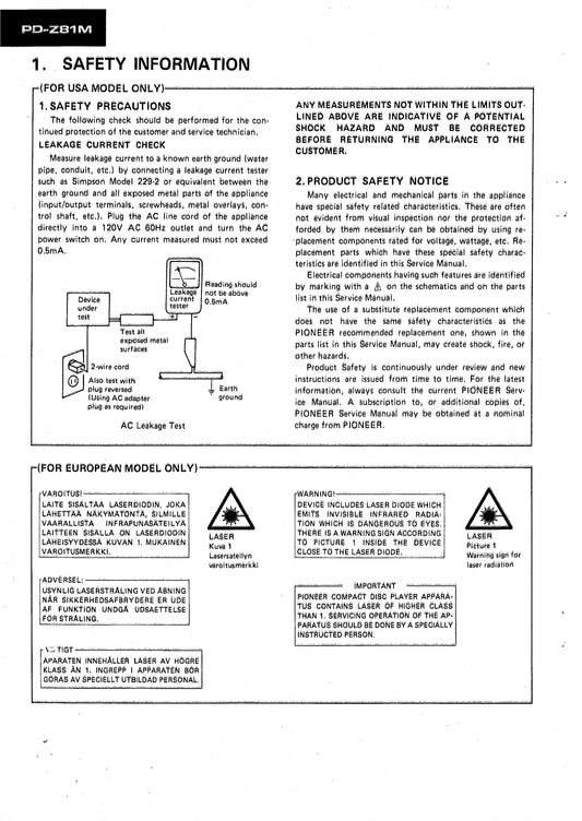 Pioneer PD-Z81M CD Player Service Manual (Pages: 171)