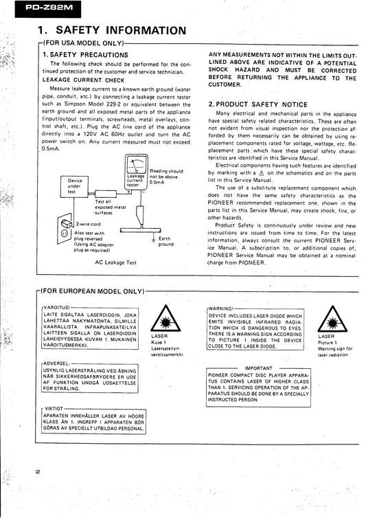 Pioneer PD-Z82M CD Player Service Manual (Pages: 69)