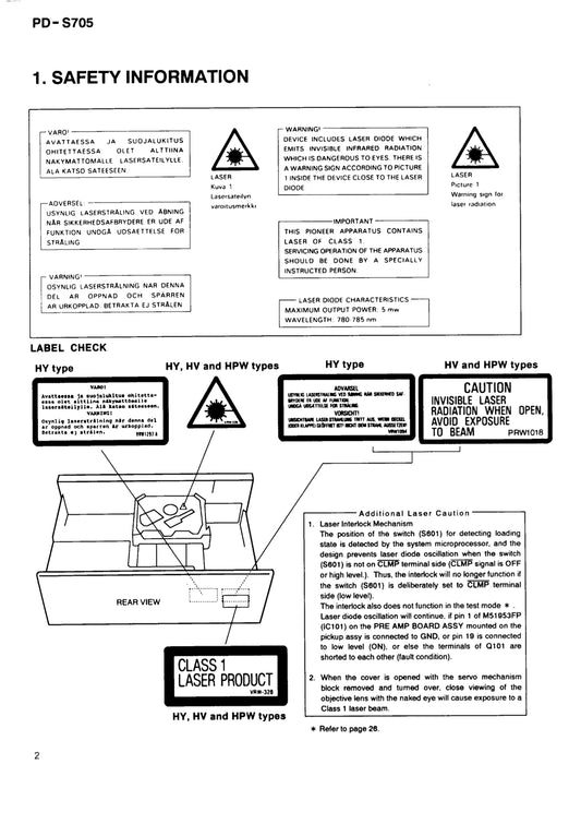 Pioneer PD-S705 CD Player Service Manual (Pages: 34)