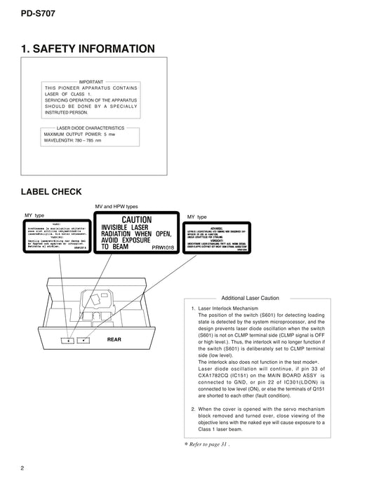 Pioneer PD-S707 CD Player Service Manual (Pages: 41)