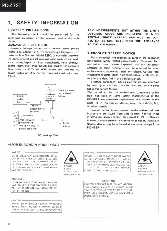 Pioneer PD-Z72T CD Player Service Manual (Pages: 62)