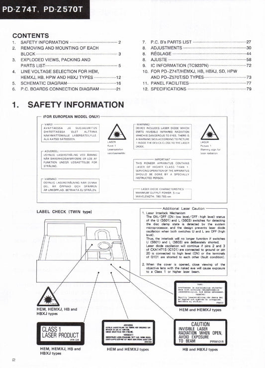 Pioneer PD-Z74T & PD-Z570T CD Player Service Manual (Pages: 67)