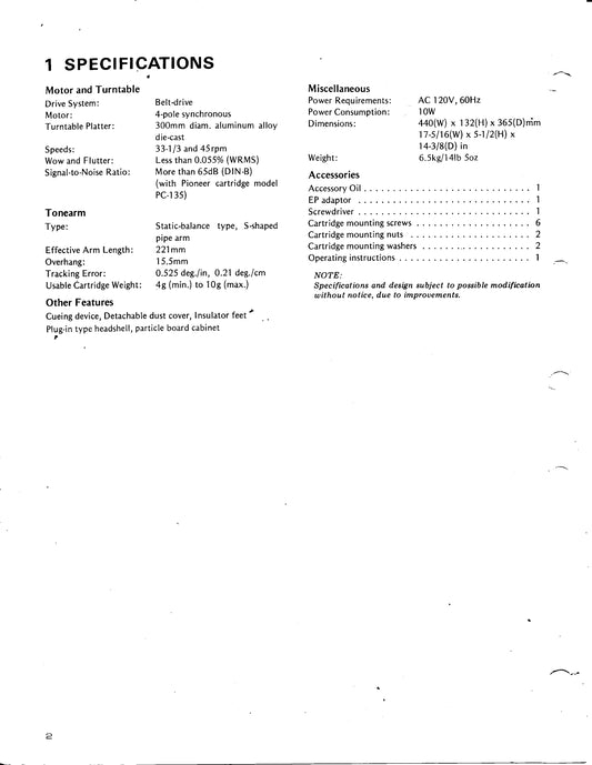 Pioneer PL-530 Turntable Service & Owner Manuals (Pages: 61)