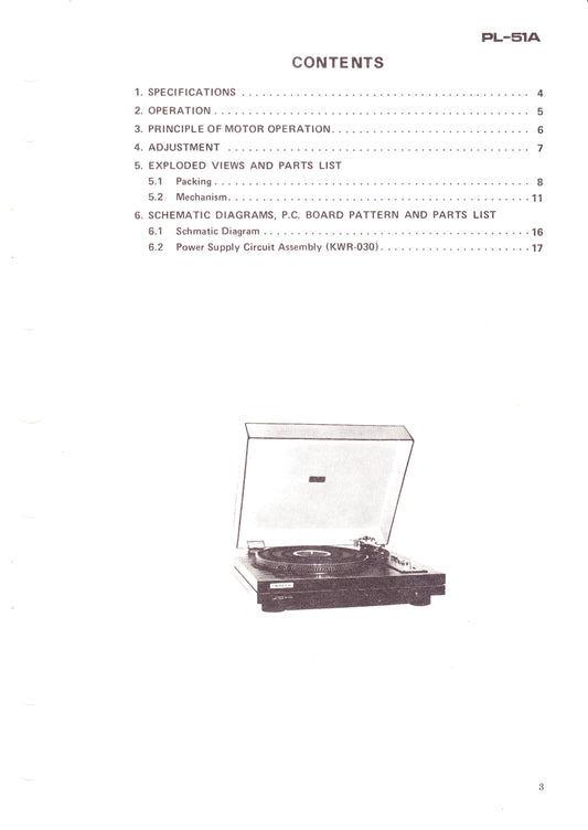 Pioneer PL-51A Turntable Service Manual (Pages: 16)