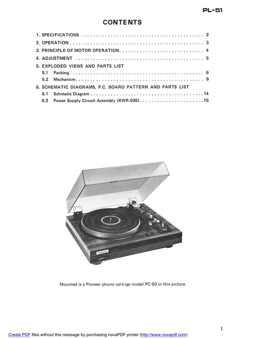 Pioneer PL-51 Turntable Service Manual (Pages: 16)