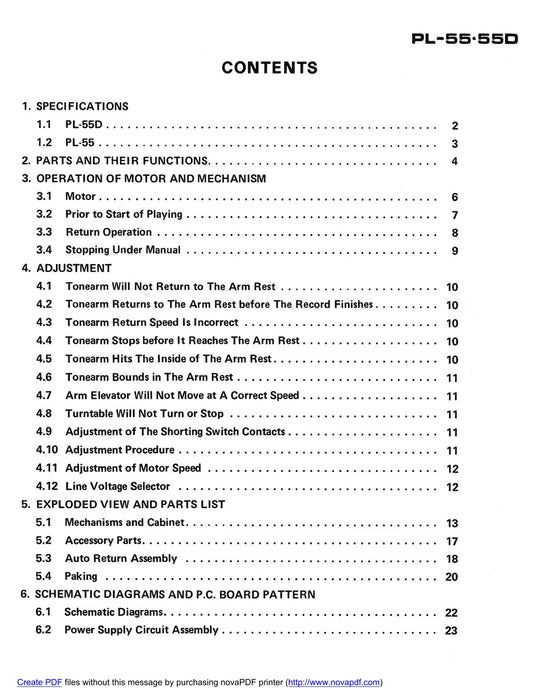 Pioneer PL-55 & PL-55D Turntable Service Manual (Pages: 25)