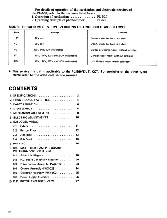 Pioneer PL-560 Turntable Service Manual (Pages: 30)