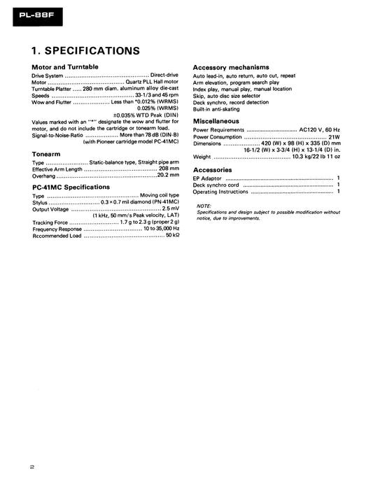 Pioneer PL-88F Turntable Service Manual (Pages: 46)