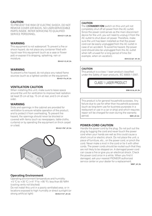 Pioneer VSXD1S Audio/Video Receiver Operating Manual