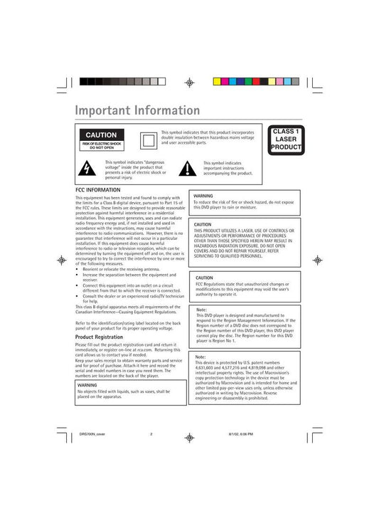 RCA DRS700N DVD Player Operating Manual