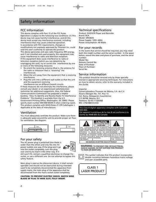 RCA DRC8335 Home Theater System Operating Manual