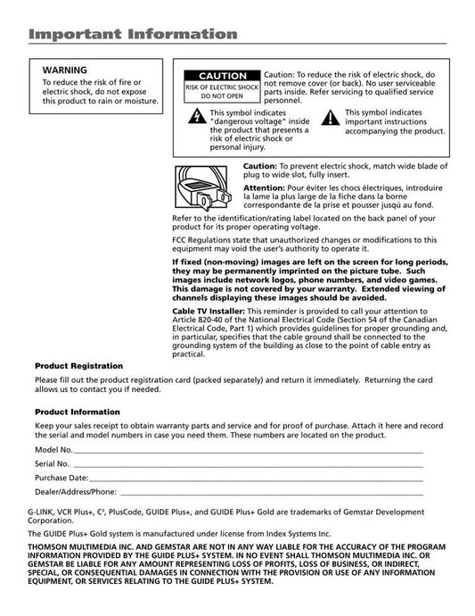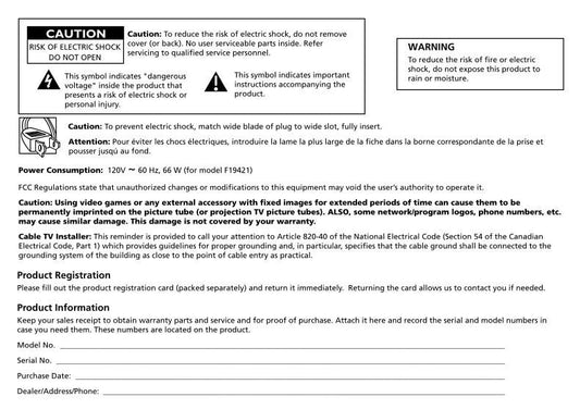 RCA F27718 F27718TX01 F27718TX01BC1 TV Operating Manual