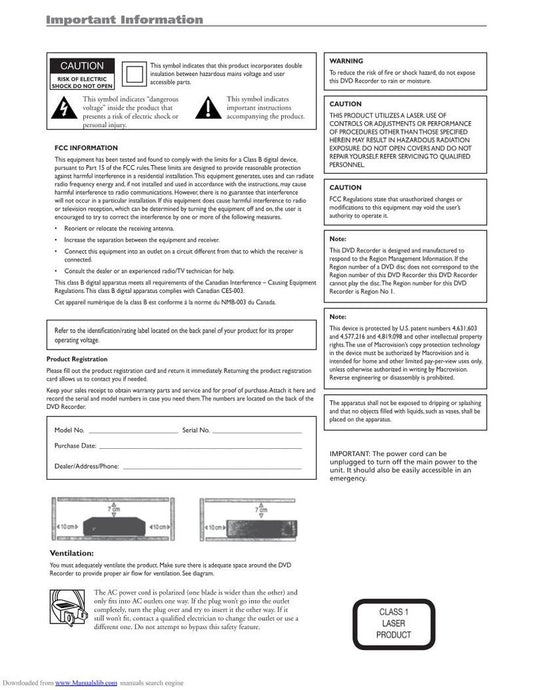 RCA DRC8052 DVD Recorder (DVDR) Operating Manual
