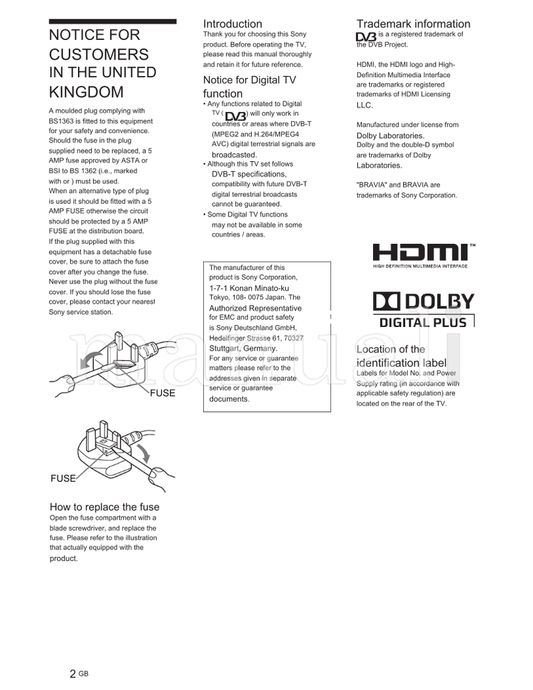 Sony KD32FS130 KD36FS130 KS36FS130 TV Operating Manual