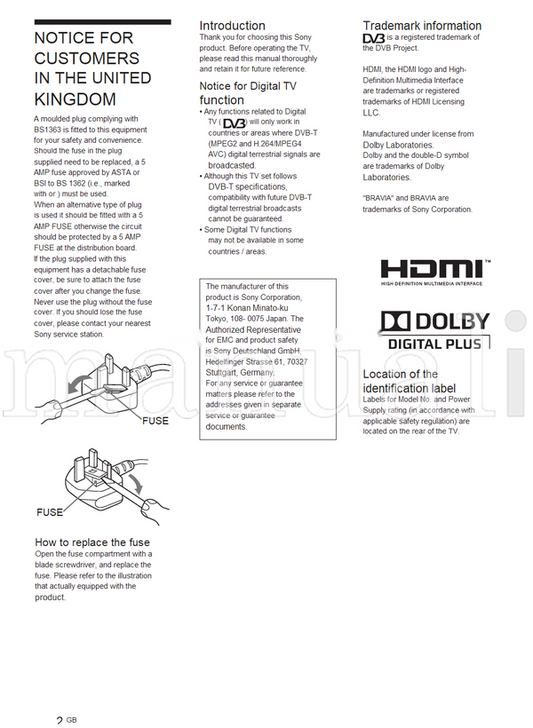 Sony KDL-19BX200 KDL-22BX200 RM-ED037 (19 pages) TV Service Manual