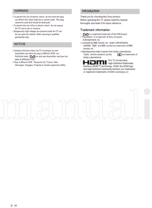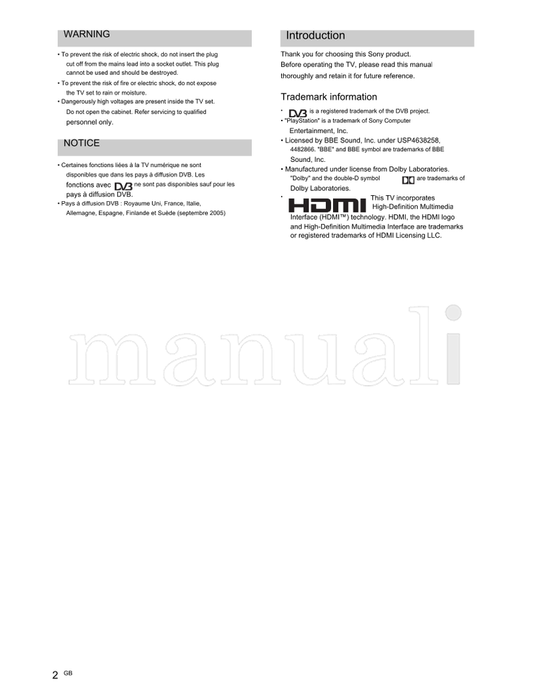 Sony KDD52V5100 KDD46V5100 KDD40V5100 KDD40SL150 KDD32XBR9 (24 pages) TV Operating Manual