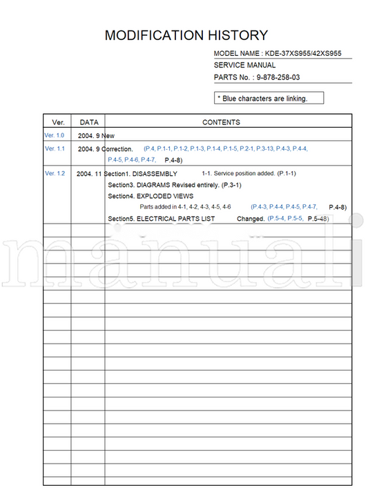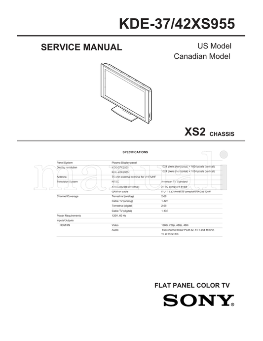 Sony KDE-37XS955 42XS955 9-878-258-03 (169 pages) TV Service Manual