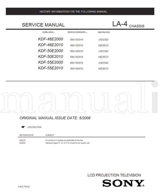 Sony KDF-46E2000 KDF-46E2010 KDF-50E2000 KDF-50E2010 KDF-55E2000 (139 pages) TV Service Manual