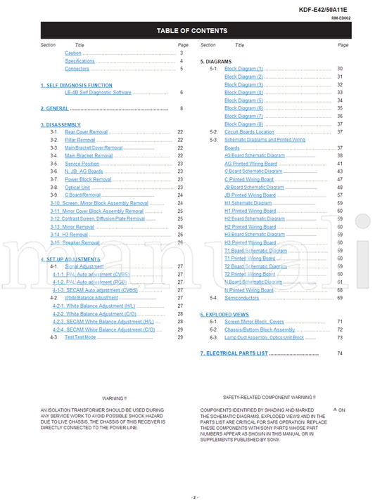 Sony KDF-E42A11E RM-ED002 KDF-E42 50A11E KDF-E50A11E (106 pages) TV Service Manual