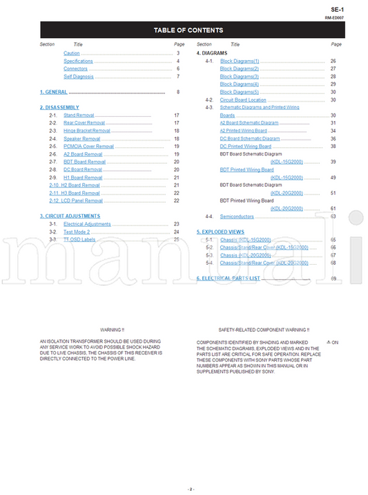 Sony KDL-15G2000 RM-ED007 KDL-20G2000 (98 pages) TV Service Manual